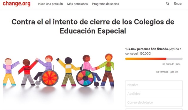 Asociaciones y padres entregan más de 120.000 firmas para pedir que no se cierren los centros especiales para este alumnado