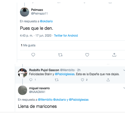 Tras esta declaración, han sido varios los comentarios homófobos vertidos contra Pablo Alborán. He aquí algunos vergonzosos ejemplos: